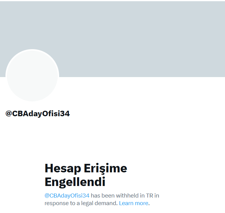 İlk olarak “CBAdayOfisi”, ardından “CBAdayOfisi1”, “CBAdayOfisi11” ve “CBAdayOfisi22” hesaplarının engellenmesinin ardından bu kez “CBAdayOfisi34” hesabı erişim engeli getirildi.