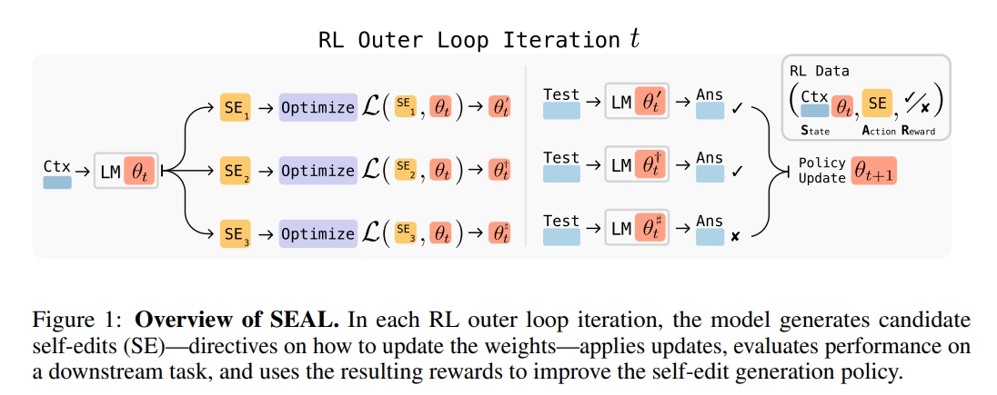 SEAL sistemi, çift döngülü bir mimari üzerine kurulu. İç döngü, modelin kendi oluşturduğu self-edit verileriyle denetimli ince ayar yapmasını sağlarken dış döngü, bu self-edit’leri üreten politikayı pekiştirmeli öğrenme yoluyla optimize ediyor.