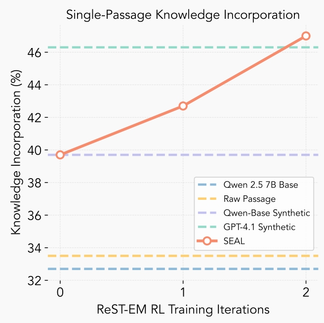 Bilgi edinimi testlerinde, modelin SQuAD veri setine benzer pasajlardan türettiği sentetik çıkarımlar kullanıldı. Bu yöntemle modelin doğruluk oranı yüzde 33,5’ten yüzde 47’ye yükseldi; hatta GPT-4.1’in ürettiği verilerle elde edilen sonuçları geride bıraktı.